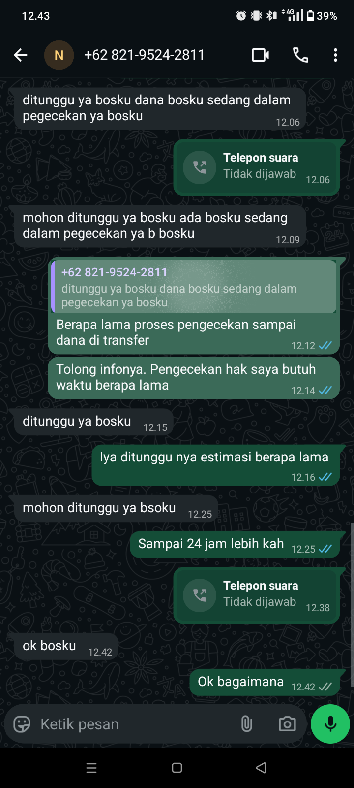 Gimana ini bos Richard apa tidak ada tindakan bos sebab wd saya tidak ada kejelasan nya saya live chat obrolan di tutup saya chat WA tidak di balas padahal saya mau menanyakan kejelasan wd saya itu