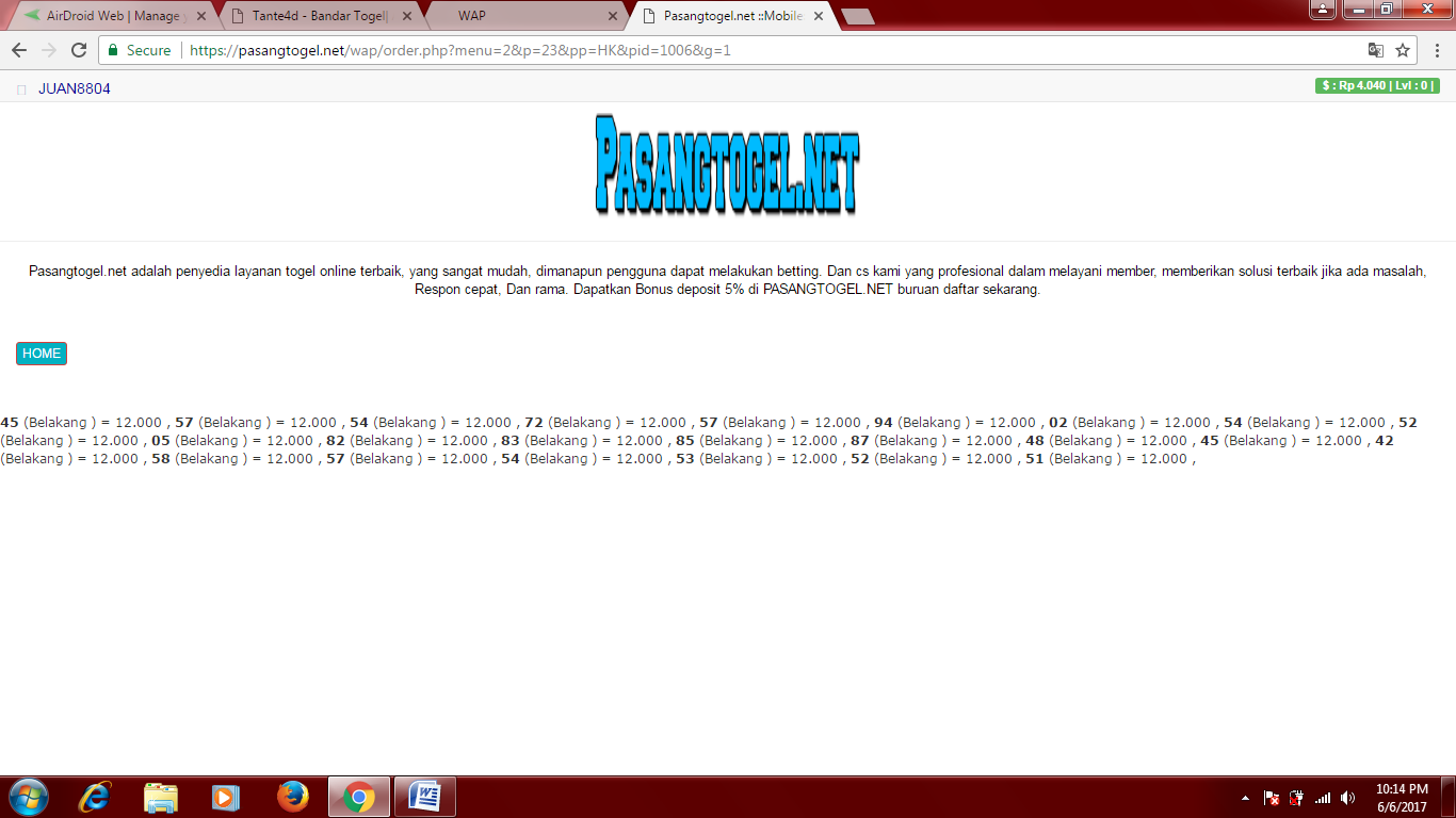 1. Hati hati bo laskar toto memanipulasi bet player,sewaktu sdh bet saldo sdh habis terpakai,begitu result,saldo kita tetap diangka sebelum kita bet,dikarenakan bet kita ada angka yg jp.