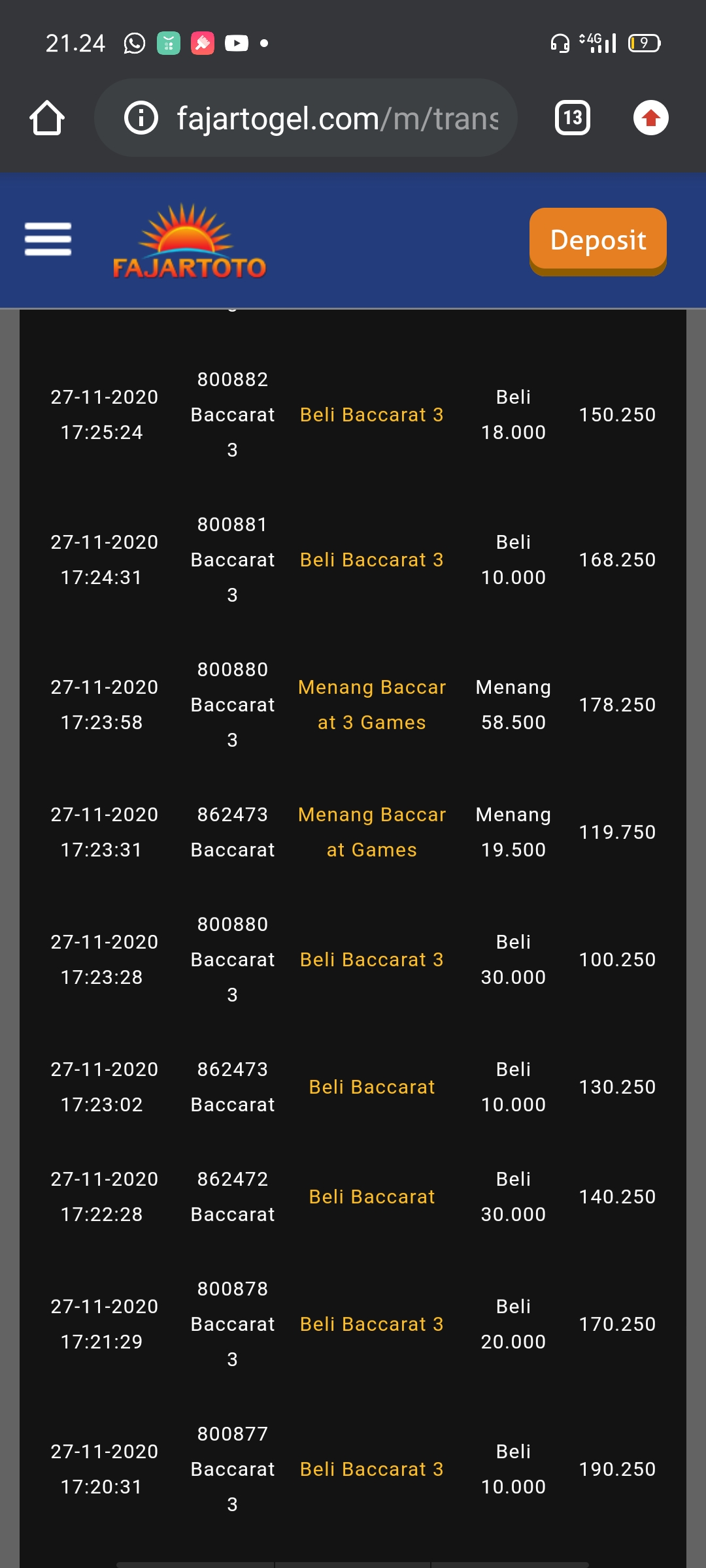 Keterangan : widrau saya nggak dibayar di BO FAJARTOTO sebesar 210 ribu,saya sudah beribu kali menghubungi pihak fajar toto,tapi mereka malah nggak ada itikat baik.