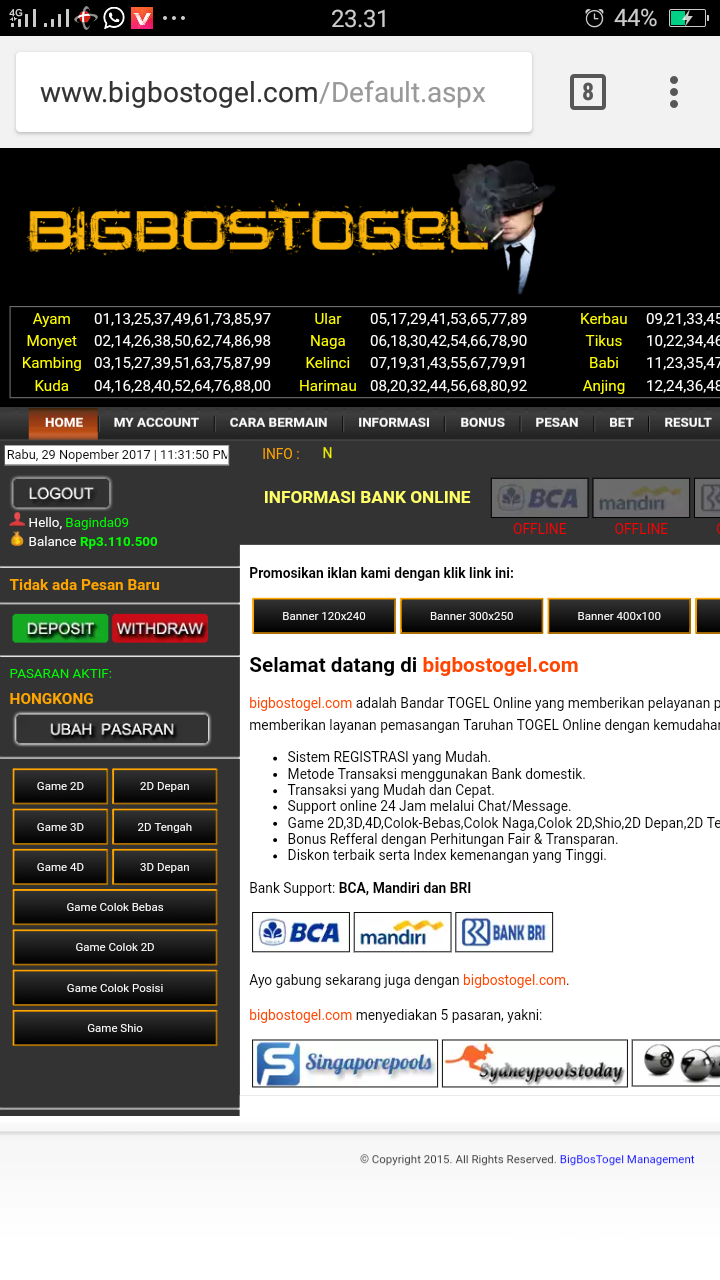 | BANKER4D | www.banker4d.com | SGP-Sydney-Hongkong | Tahun 2014 | Masih Aktif | Review Data Penipuan |
