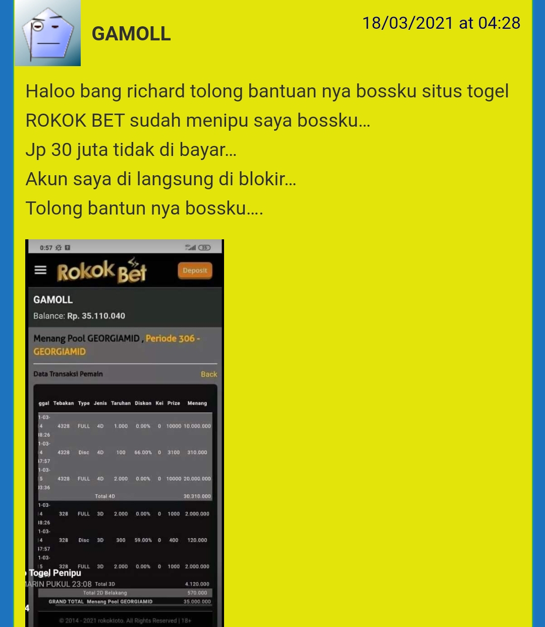 2. Laporan Penipuan Telah dilanjutkan ke fihak pengelolah Agen togel online namun Tidak ada etikad Baik untuk menindak lanjutinya