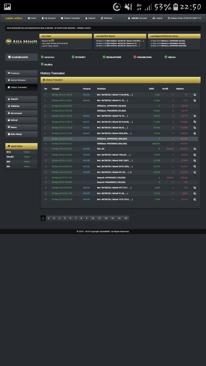 48. awas mas brow BO nagasaon88 net bo penipu gak pernah di transfer kerekening klo JP