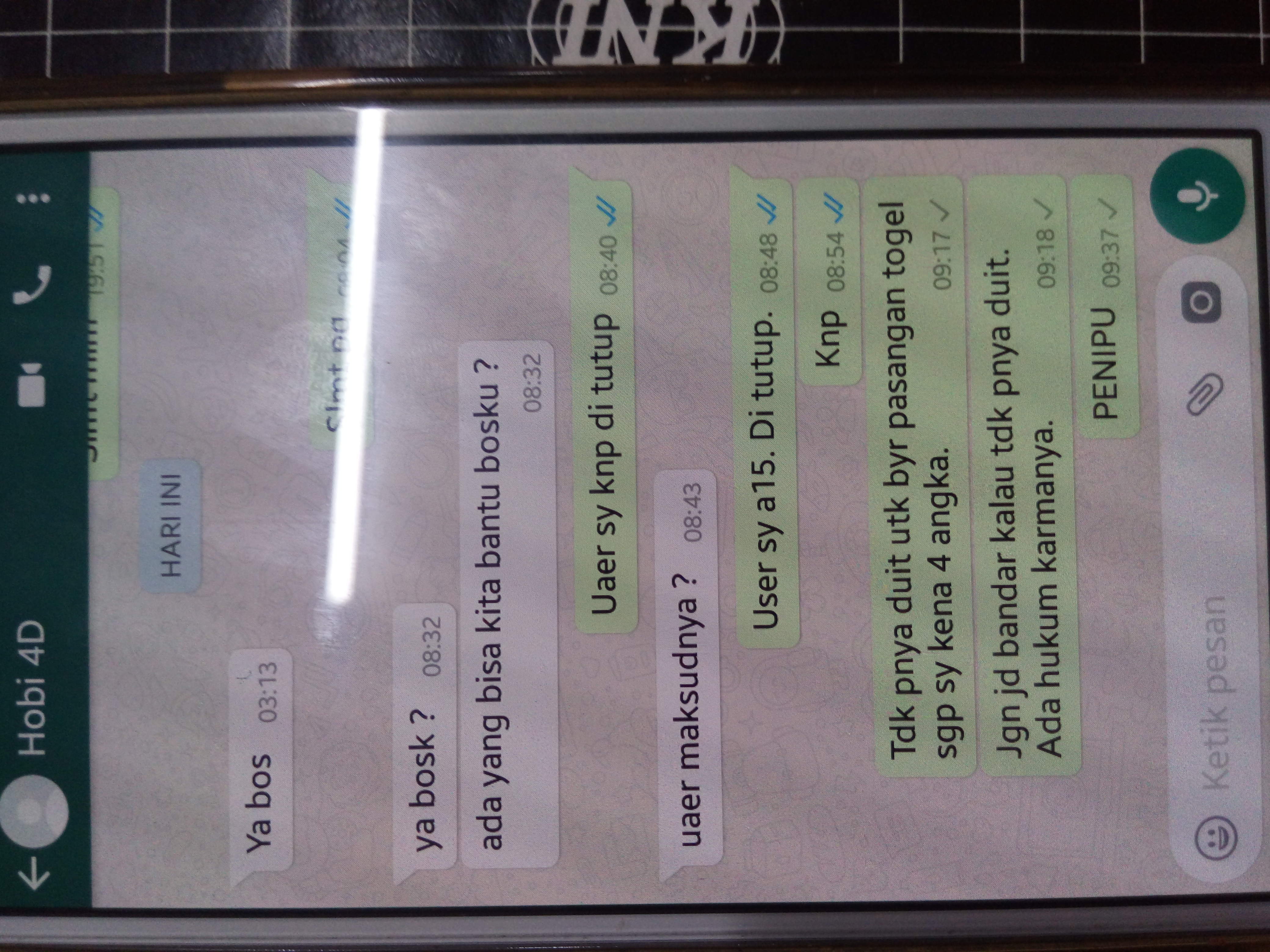 2. Laporan Penipuan Telah dilanjutkan ke fihak pengelolah Agen togel online namun Tidak ada etikad Baik untuk menindak lanjutinya