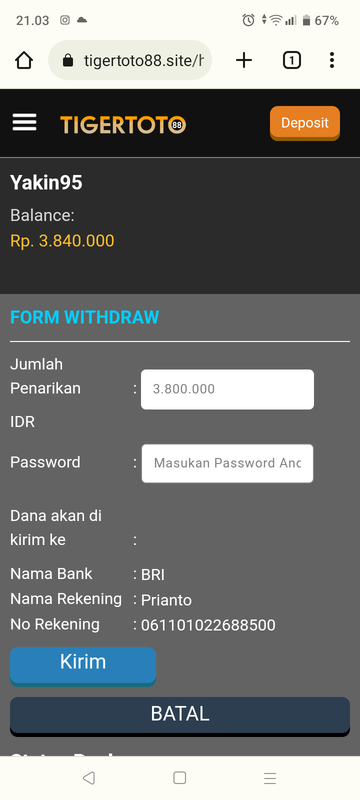 1. Deposit 6rts dalih d bekukan malah suruh deposit lagi TIGERttoto88 link penipu