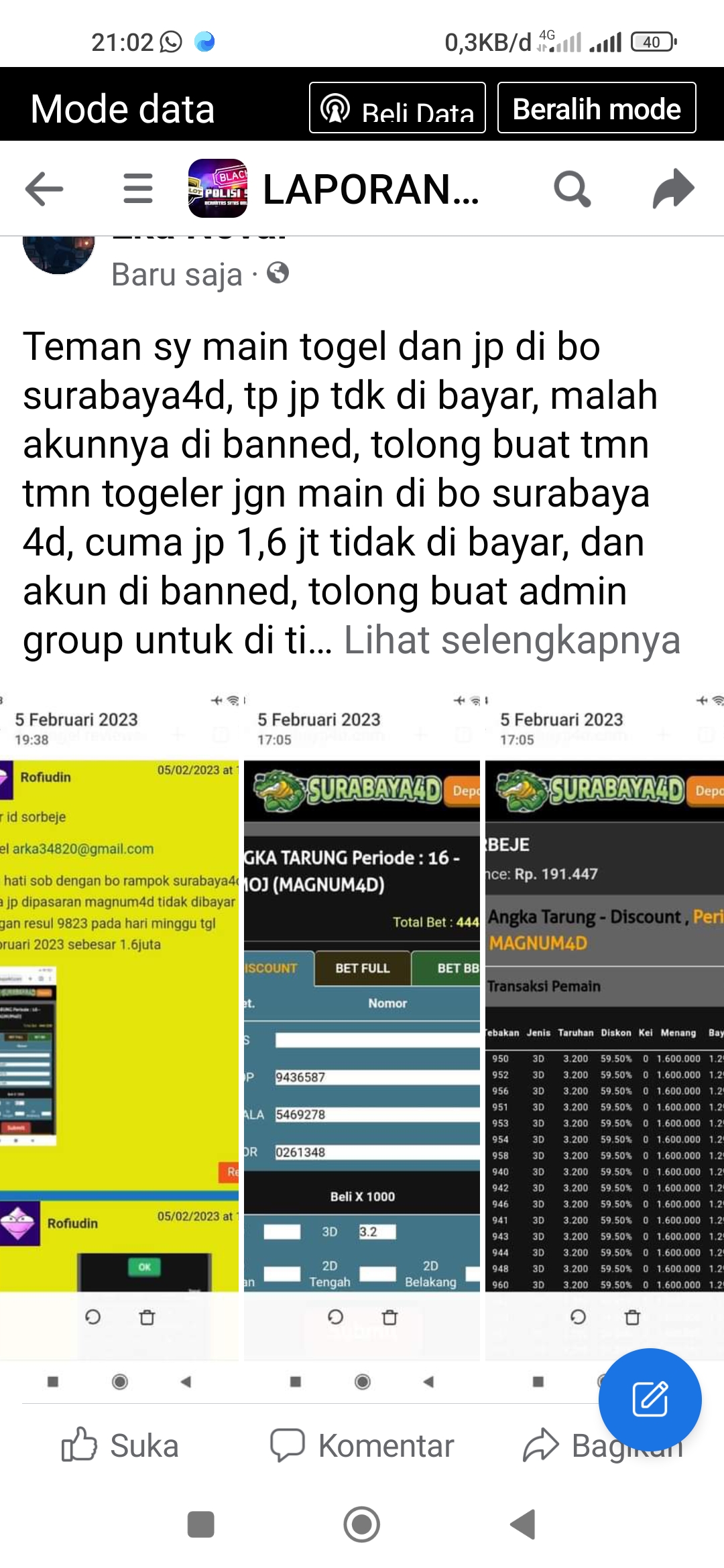 2. Laporan Penipuan Telah dilanjutkan ke fihak pengelolah Agen togel online namun Tidak ada etikad Baik untuk menindak lanjutinya