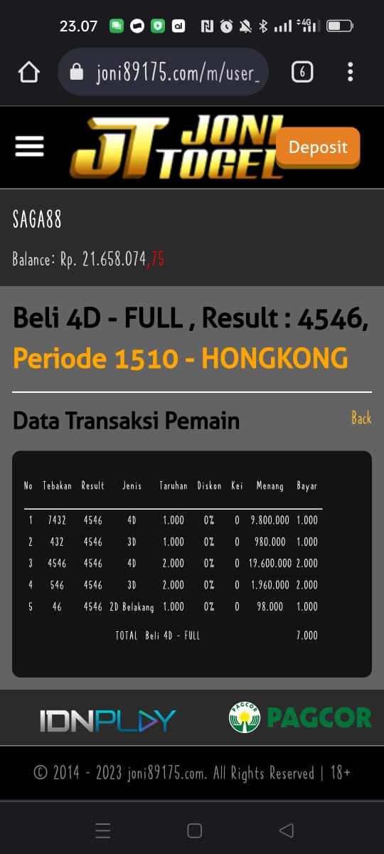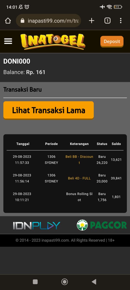 Tidak bosan2 posting hasil main BO INATOGEL