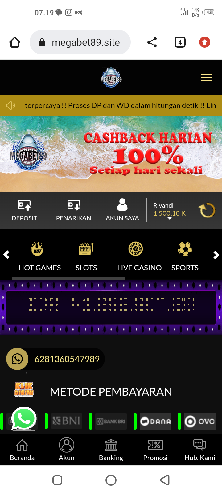 49. Megabet89 DEPO pending. Udah JP mau WD malah disuruh depo lagi buat “UPGRADEVIP” masih tetep gabisa WD dan terakhir bilang depo 50rb buat WD prioritas. Nihil