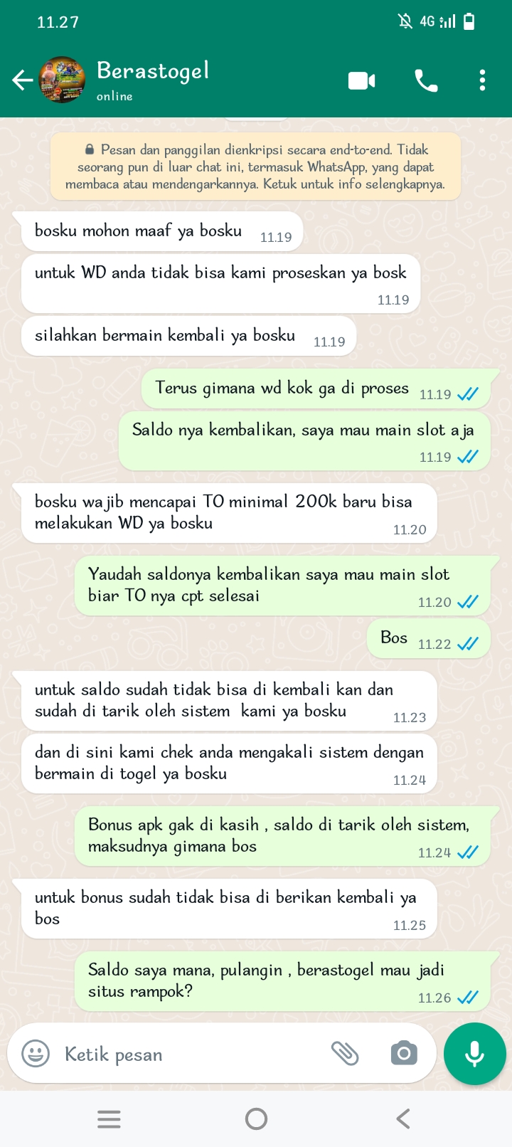 Hati hati jangan main di situs BERASTOGEL boss. Withdraw 156rb gak di proses, katanya di tarik sistem , WD receh di rampok oleh BERASTOGEL