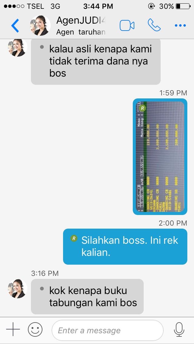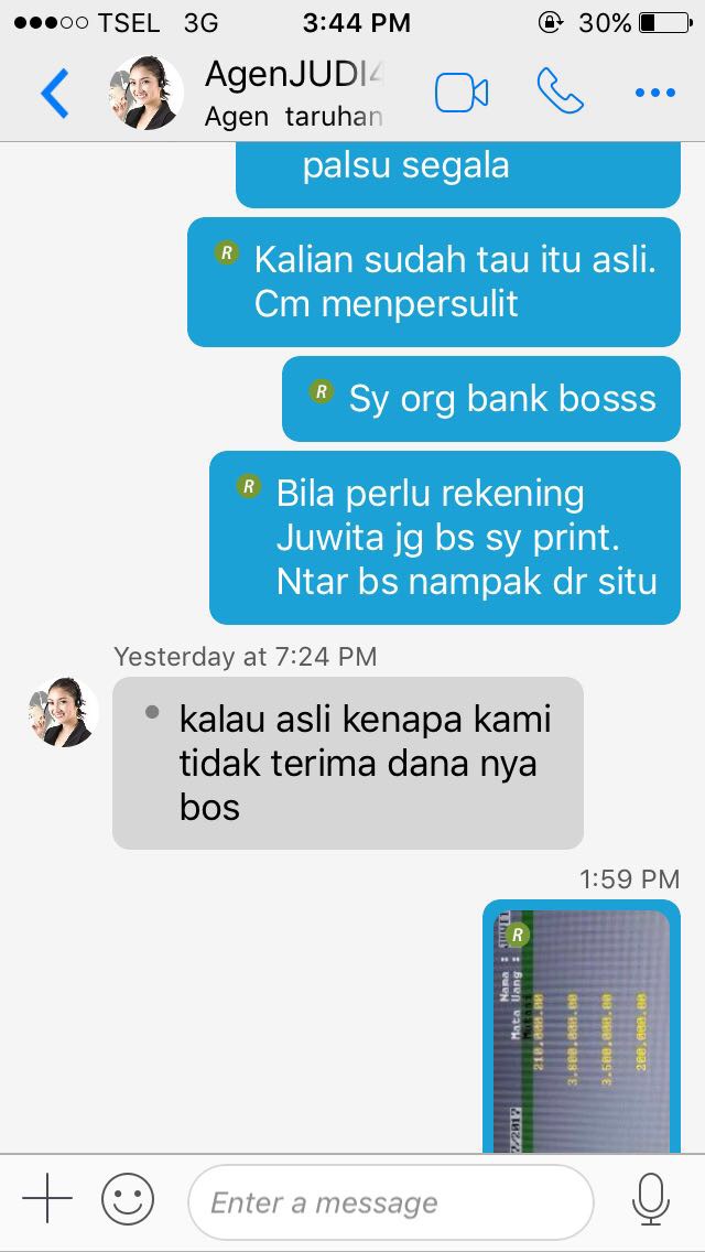ya benar sudah jelas ss yg di kirim admin agenjudi itu chat nya adala fortune orang bank masih di percaya