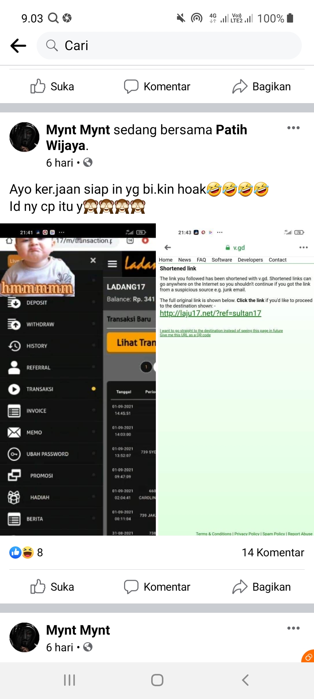 Yang bikin hoax admin ladangtoto, hasil menang main 24D, dan admin ladangtoto & teampromo nya mempublikasikan data pribadi saya di grup2 fb.