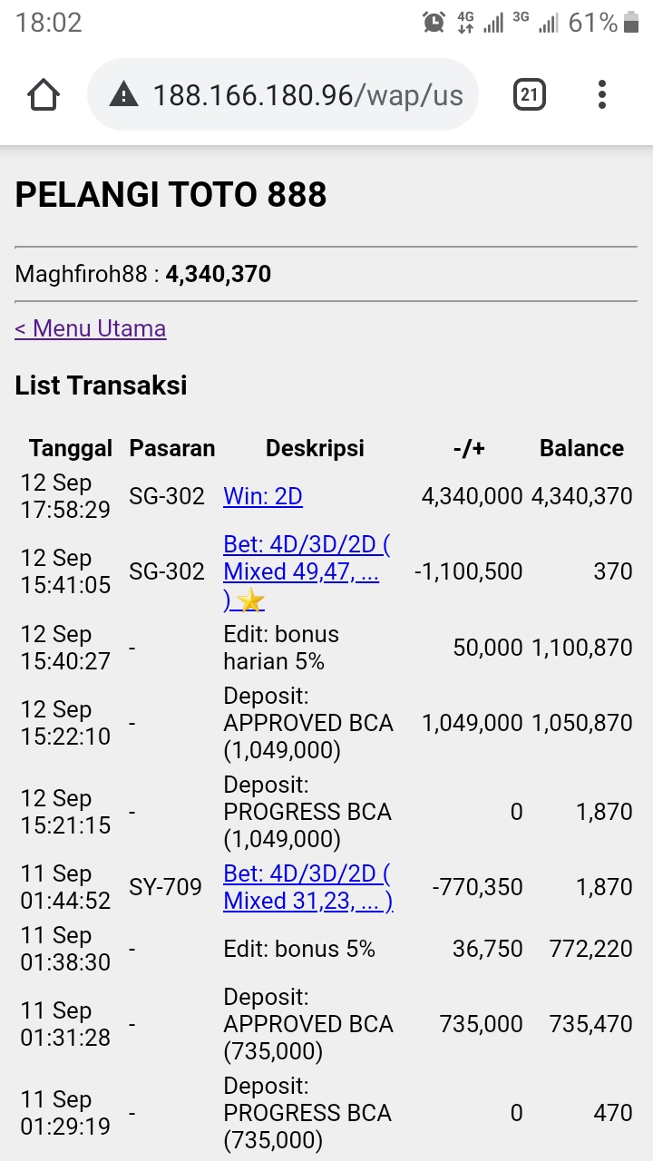 37. Itu sdh kasih saya bukti bos. Saya tdk bisa isi form wd bos. Habis itu saldo kemenangan di hanguskan.. dan langsung di tutup.. cuma segitu yg bisa syaa buktikan.. sya harap bos bisa membantu, paling tdk naikkan bo pelangi sbg penipu. Saya korban!