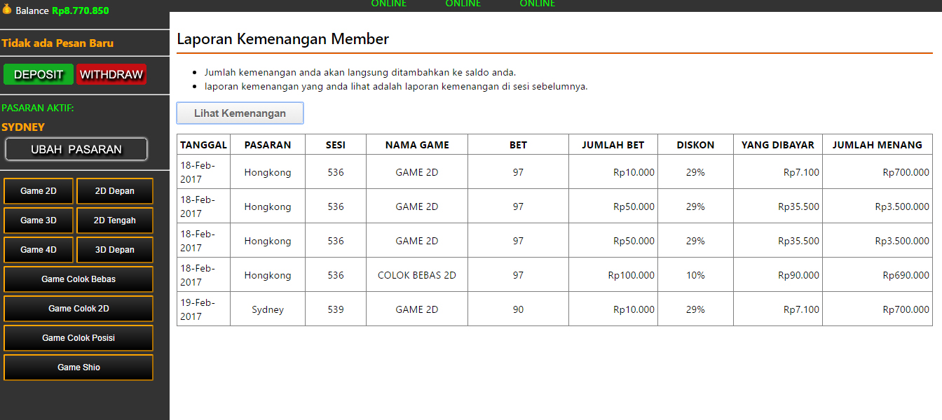 dengan 7 pasaran yang resmi,Dengan Min Depo 20 Ribu dan Min Pasang RP.500