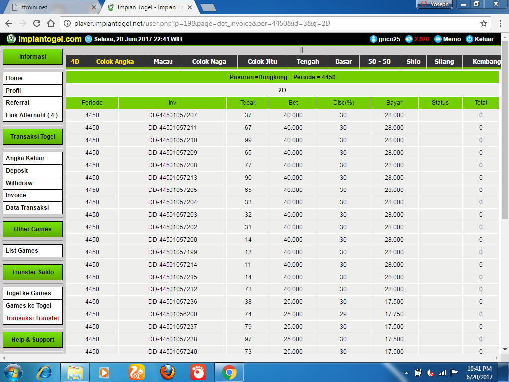 36. Saya di tipu bandar situs web tikus togel.pada hari senin tgl 10-07-2017 Saya bet 1set 4d 3d 2d angka nya 7301 di pasaran hk. Pas saya bet sekitar jam20:30wib jauh sblum pasaran of.