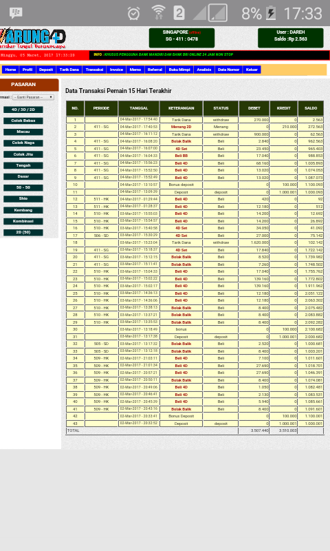 2. sustertogel aman bos saya menang pasaran hongkong walaupun kecil hanya 14jt langsung masuk ke rekening saya bos