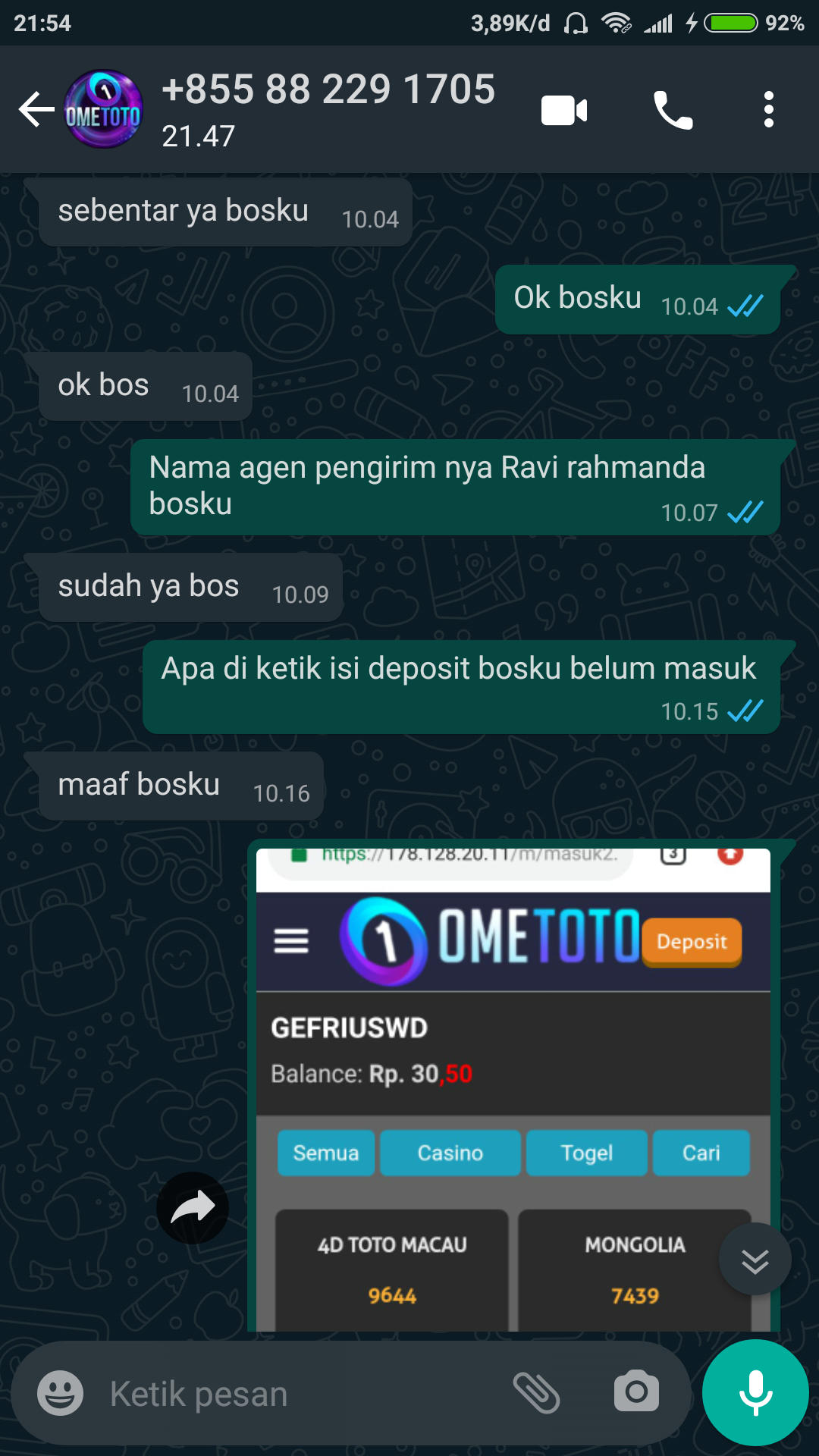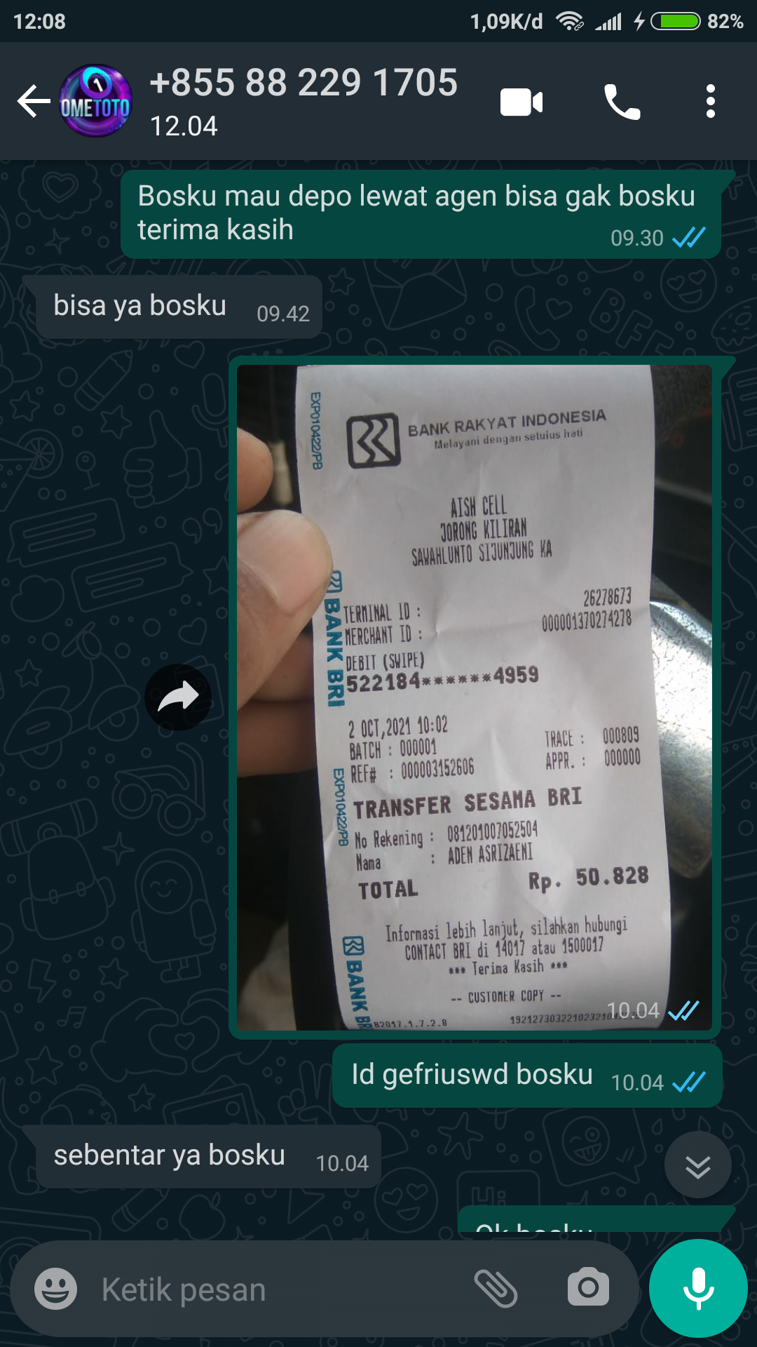 3. Sebelum ngirim saya cek terus bang Richard dan udah beberapa kali saya depo lewat agen kirim ke rek no ometoto gak ada masalah dan baru kali ini saya mengalami nya. dan saya sudah gak main LG disana.