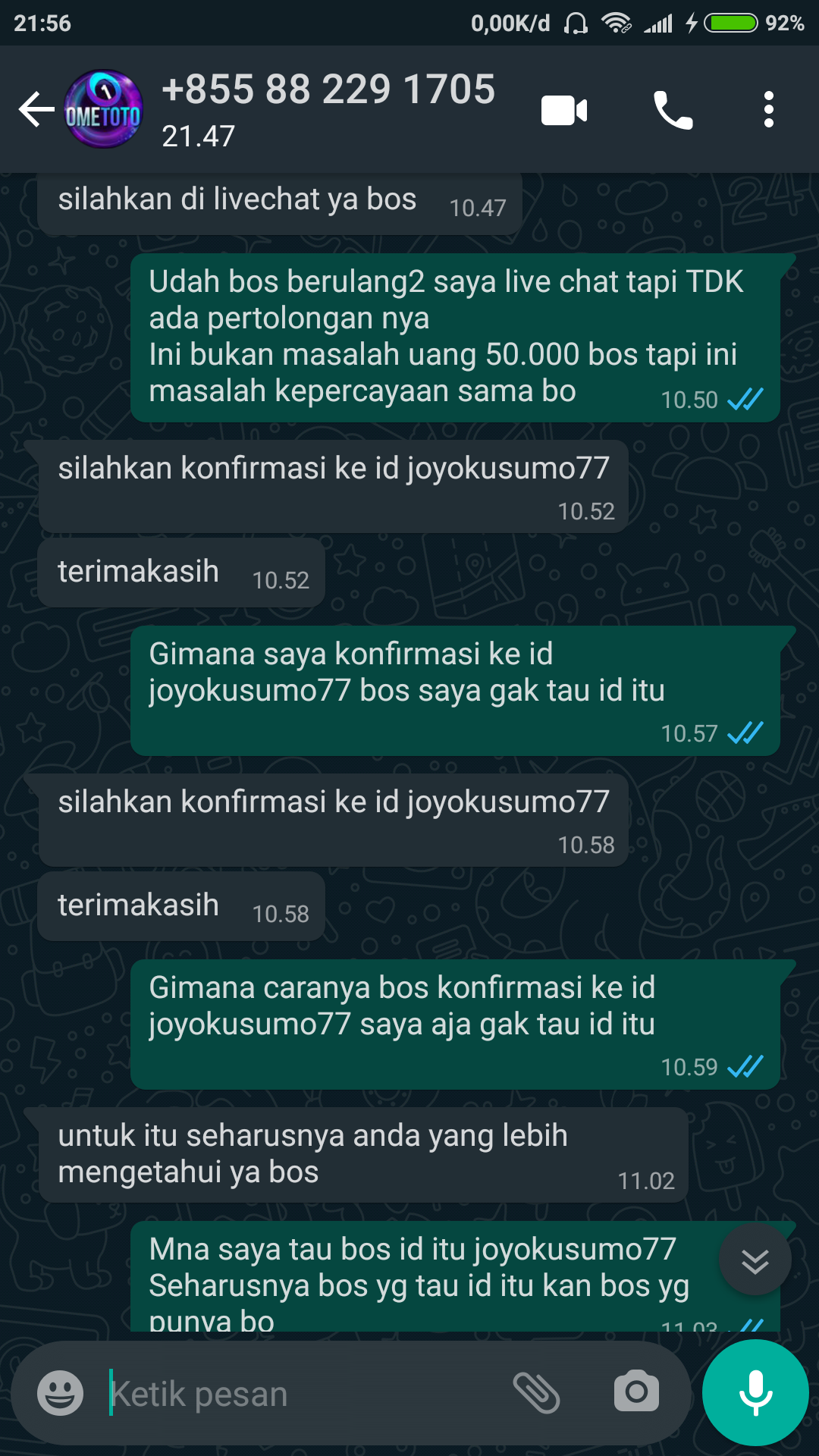 Iya benar g masuk logika bagi saya masak depo bisa ke akun org lain yg nama akun nya joyokusumo77 kata admin ometoto. padahal saya yg ngirim ada bukti transfer lg, dan admin tdk bisa bantu saya. ni bukti transfer saya bang