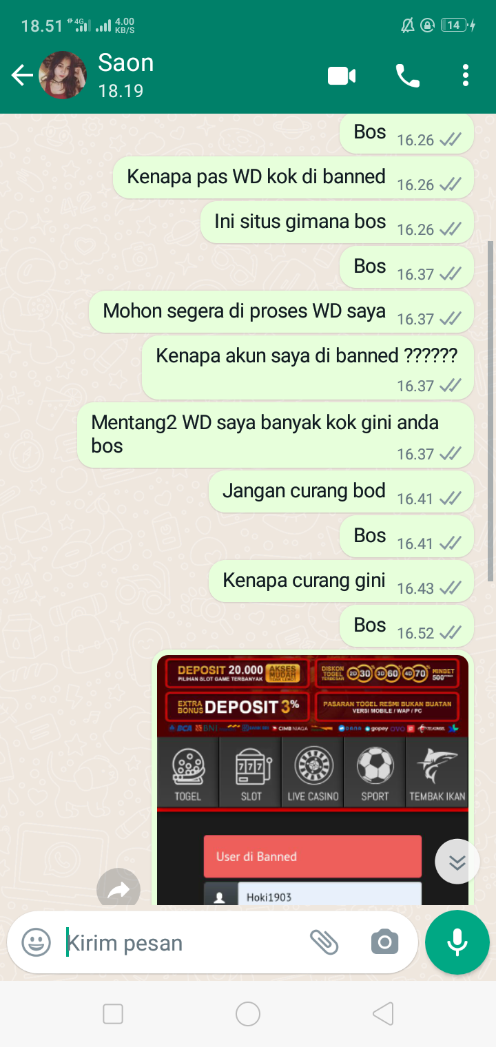 Bos. Akun saya di banned . Di situs nagasaon88 . Padahal posisi WD bos.