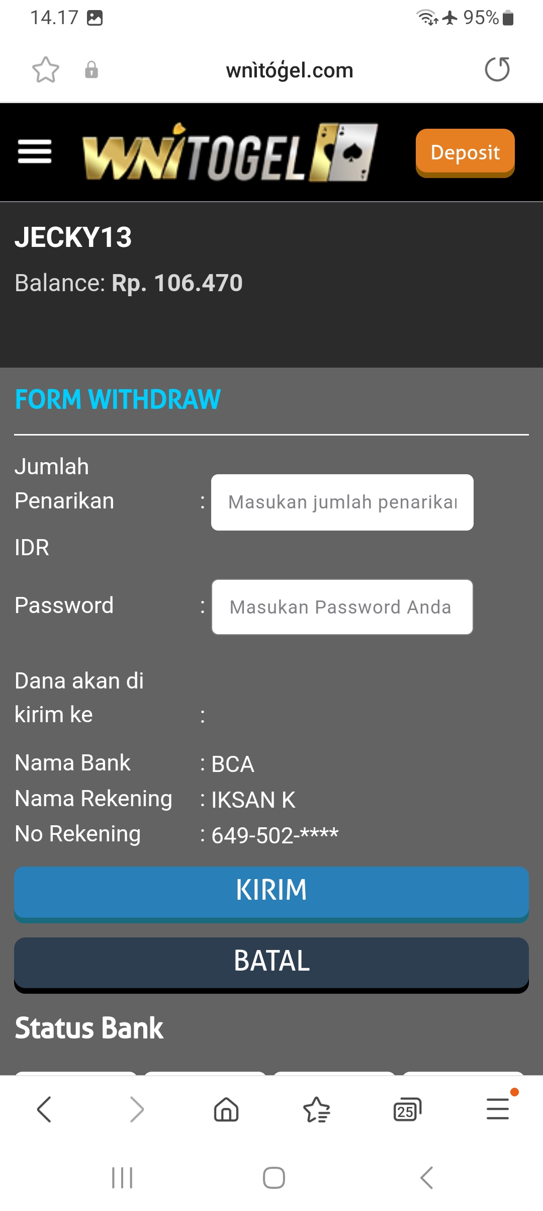 Tolong di tindaki, bo wni togel sdh 3 hari wd tdk di rimkan…