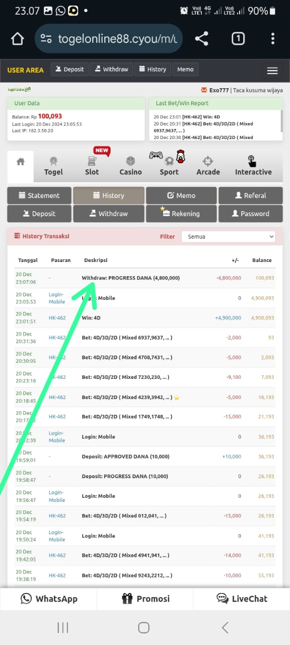 50. Saya wd Rp 14.500.000 dari kemenangan togel ciputratoto tidak di setor k rekening BCA saya…