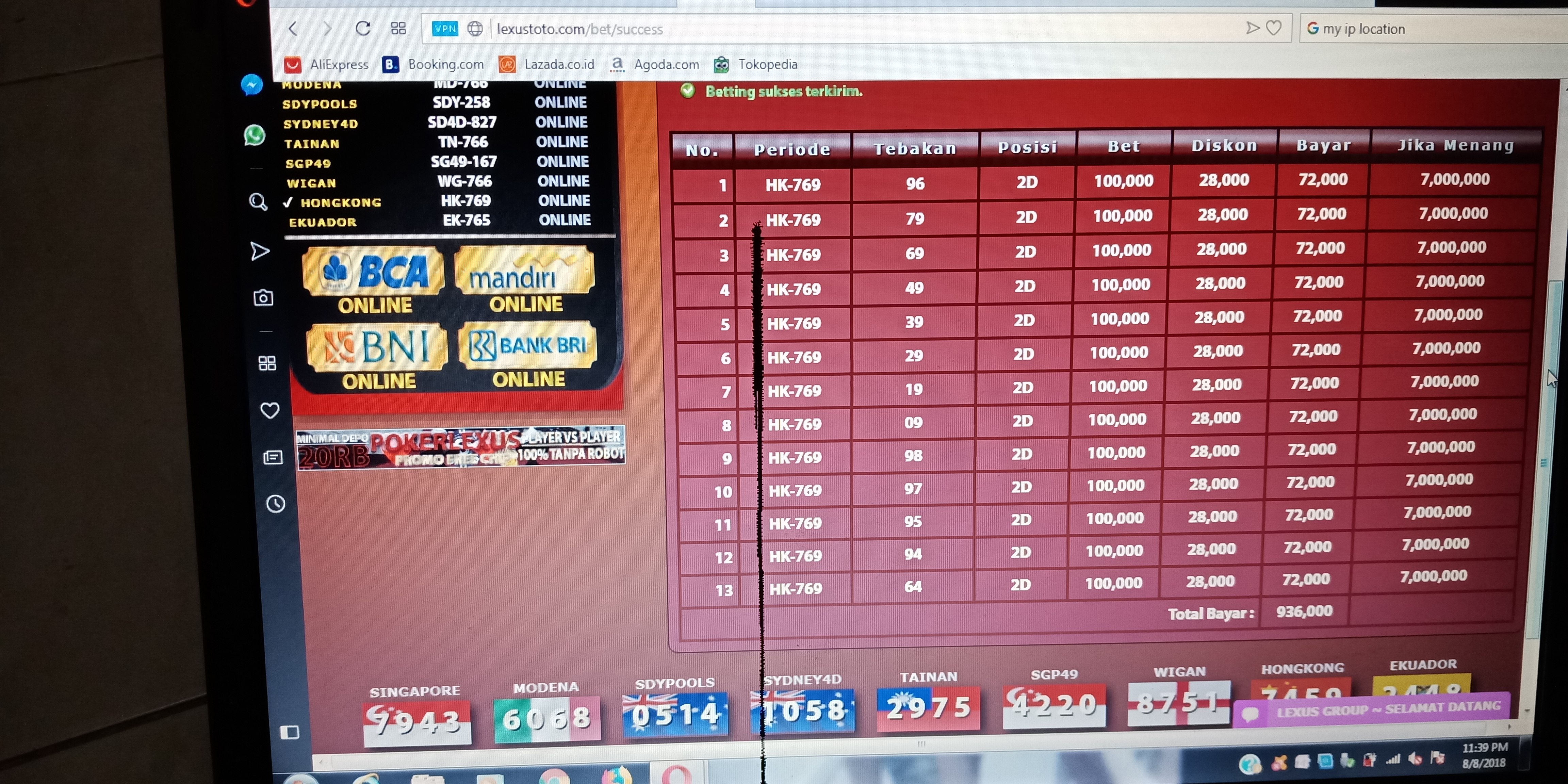 1. lexustoto tolong diblacklist boss.. bettingan w dirubah.. ini bettingan asli w sama lexus dirubah 69 jd 64