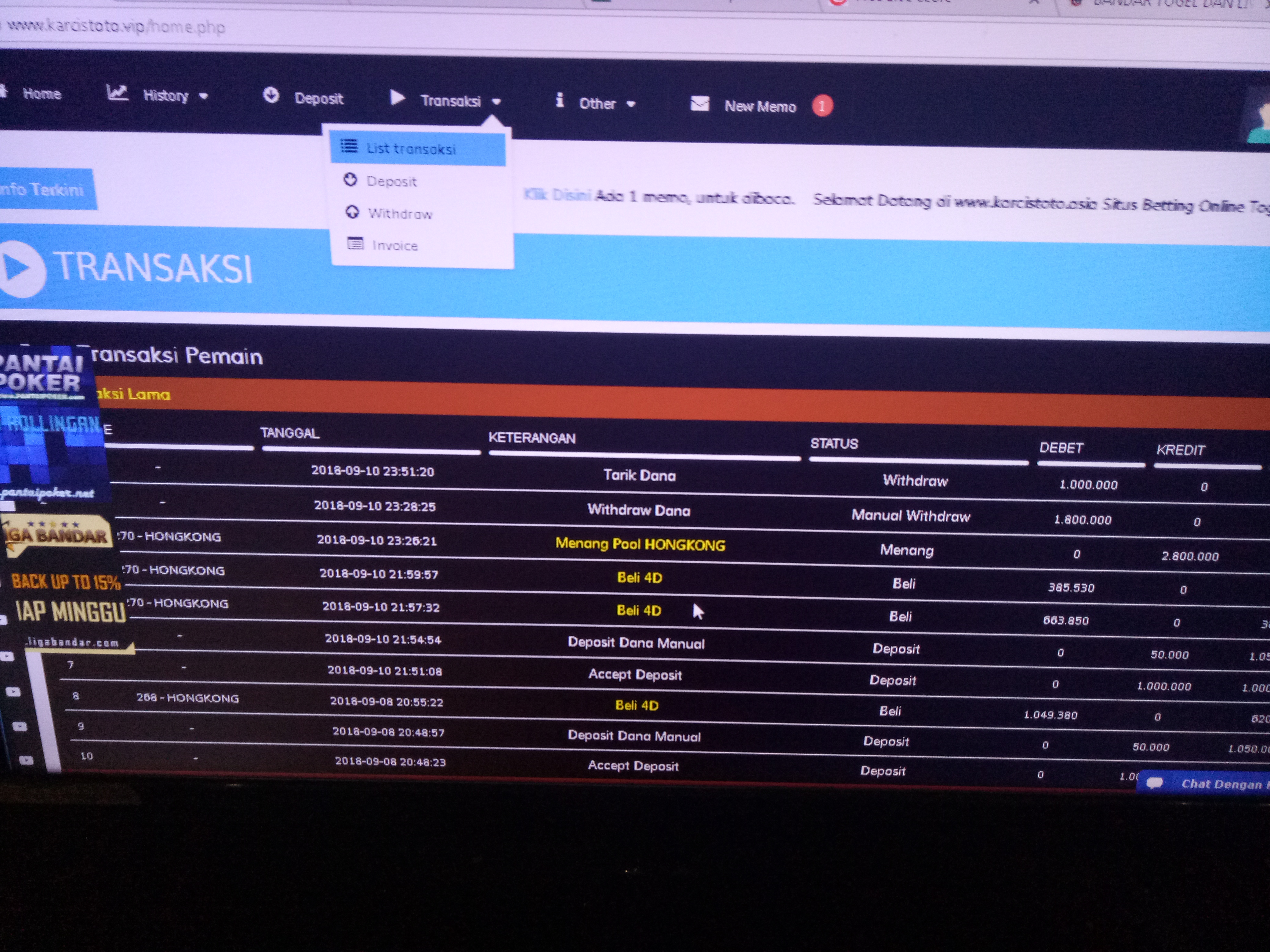 20. karcistoto penipu wd gk di bayar sm ligabandar penipu jg wd gk di byr akun blokir jgn maen situ lg gan.