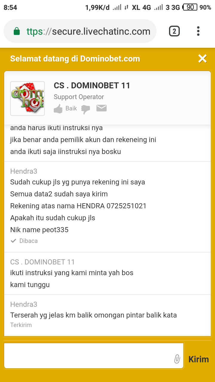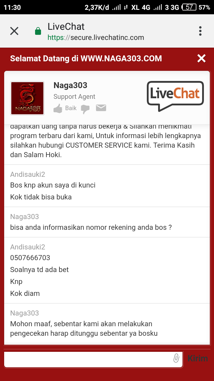 Ini buktinya saya live chat unser nama DEWA789 DAN PASWODNYA NAGA303 mohon di tindak bos.. Dan sudah merugikan.. Kepada member..