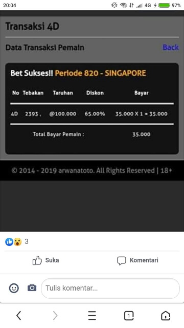 Silahkan Player Post SS (screenshot) Hasil Transaksi Betingan Sebelum Result
