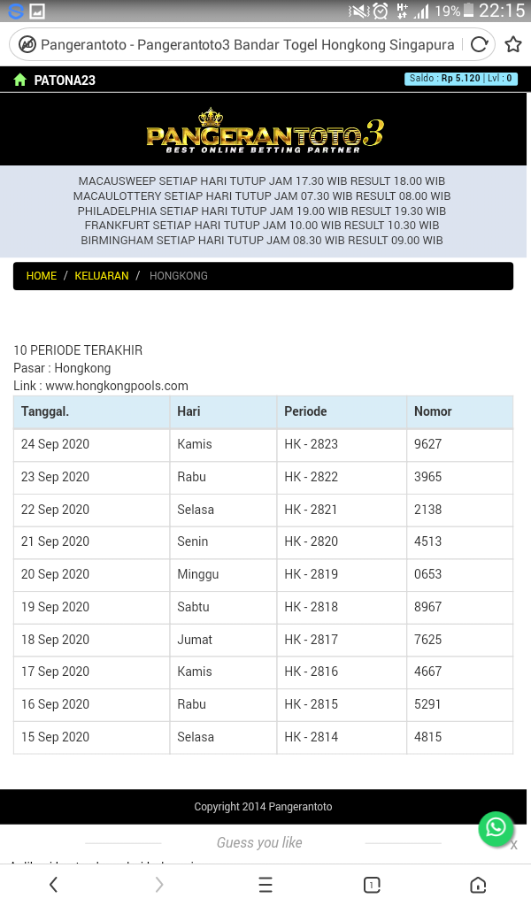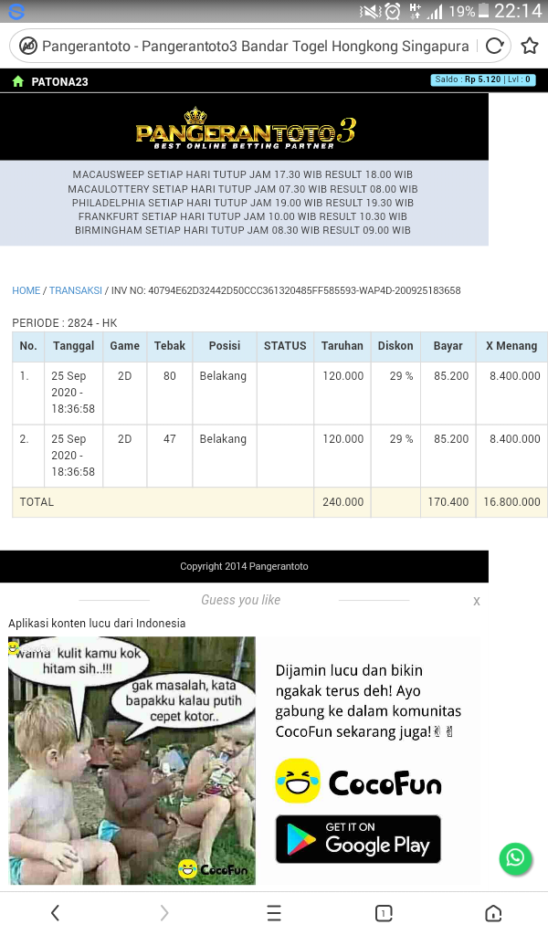 Result 20 tidak dibayar.. malah di kembalikan bettingnya