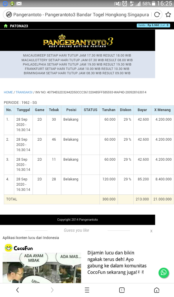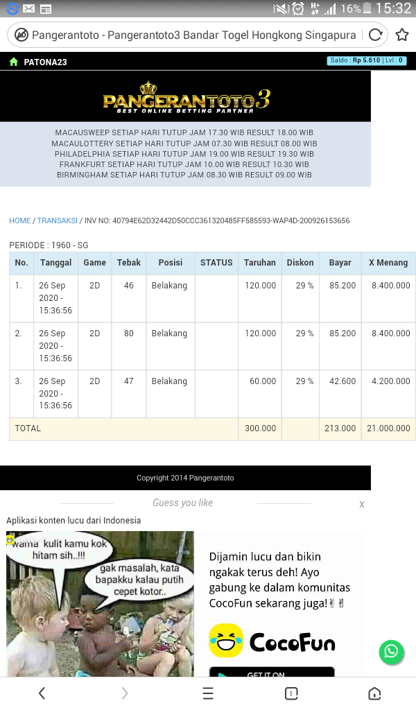 Berapapun kemenangan akan dibayarkan sesuai dengan invoice = KENYAMANAN MEMBER adalah PRIORITAS BAGI KAMI !