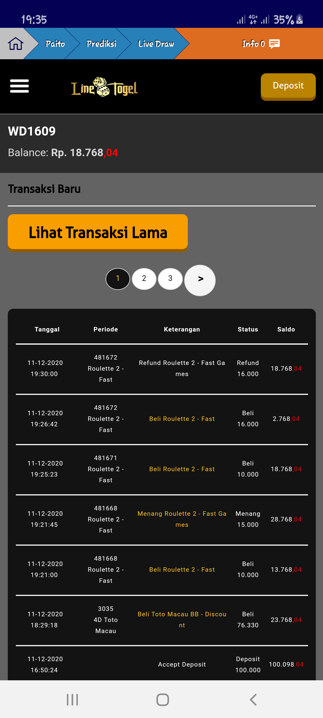 1. Sebelumnya gue depo 300rb di wede 600rb aman2 aja