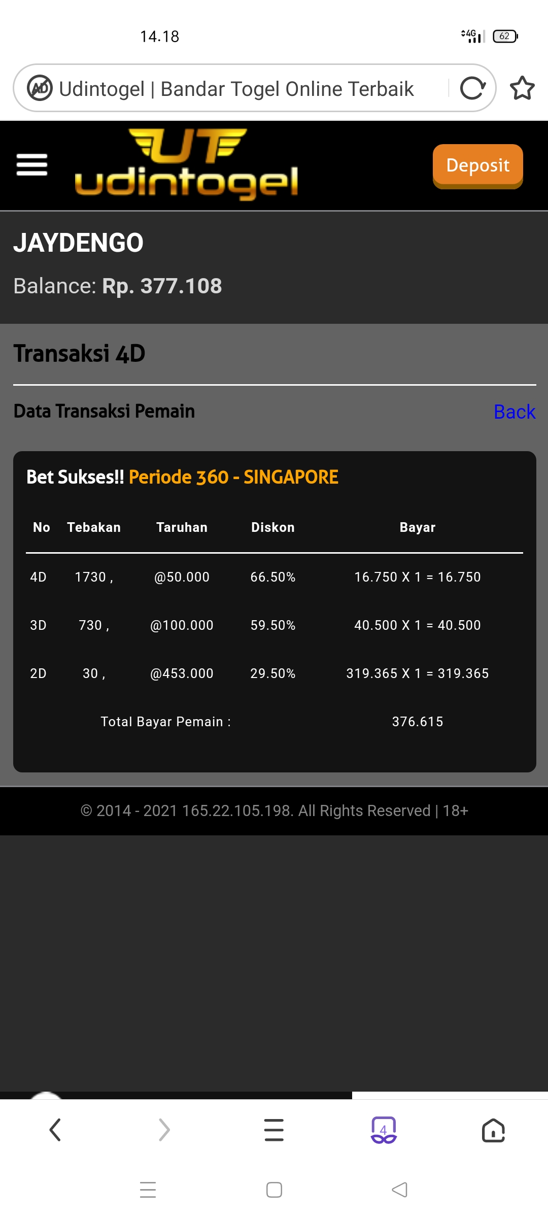 1. Sobat ada bukti transaksi bet sebelum result