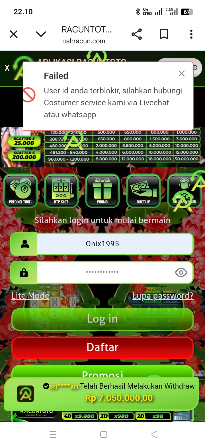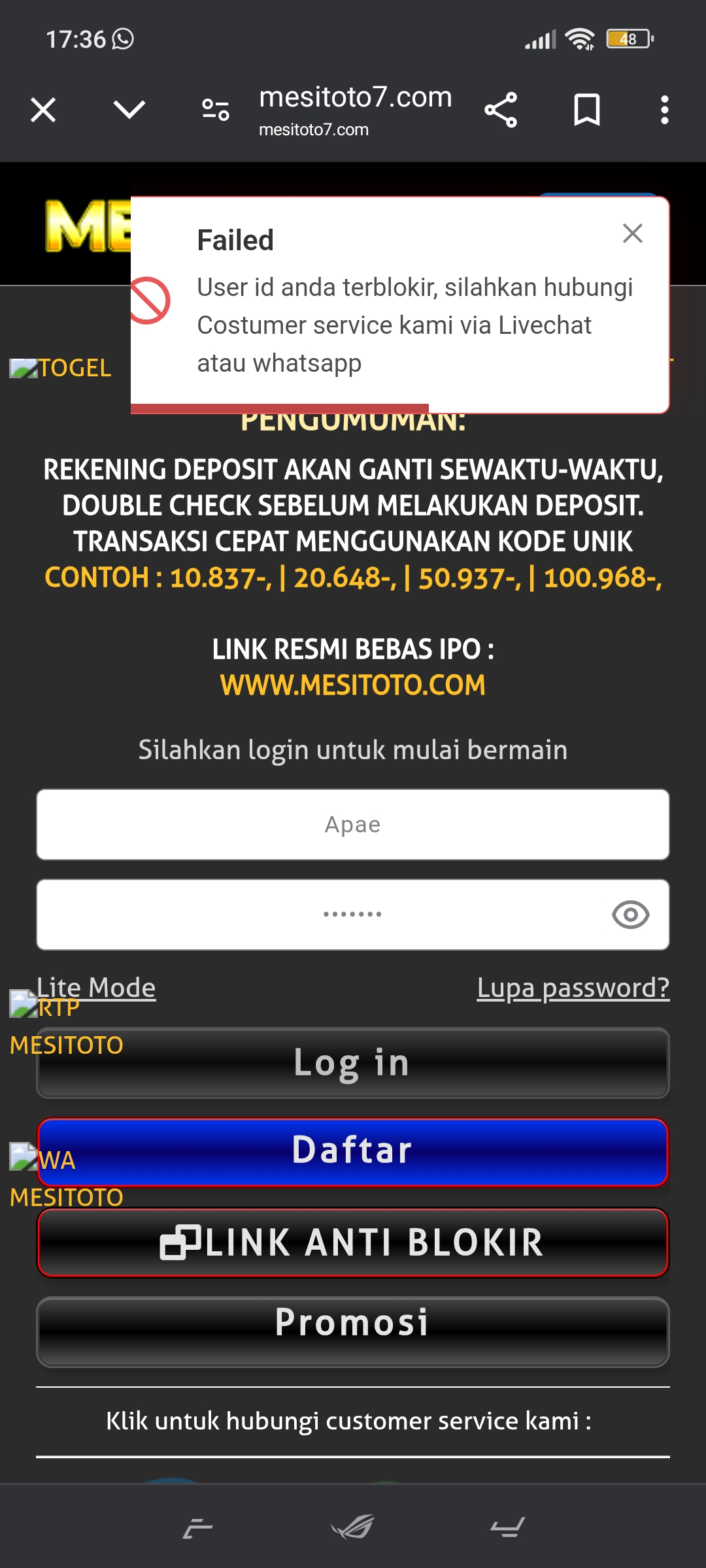 Akun saya di blokir menang slot 3.8 jt dan menang togel 1 jt di situs mesitoto