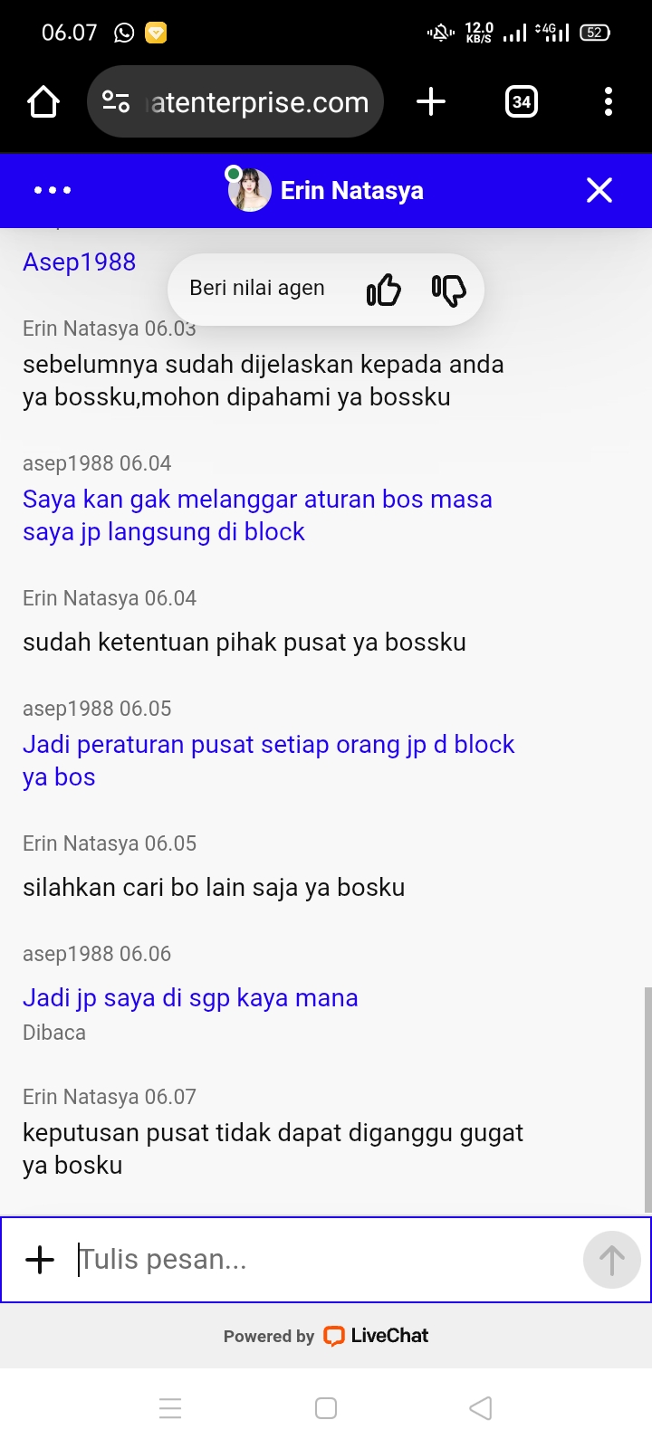 Bos saya jp hk di bo shoptoto cuma 740.000 ribu tidak di bayar akun di blok di wa di chat tidak di respon