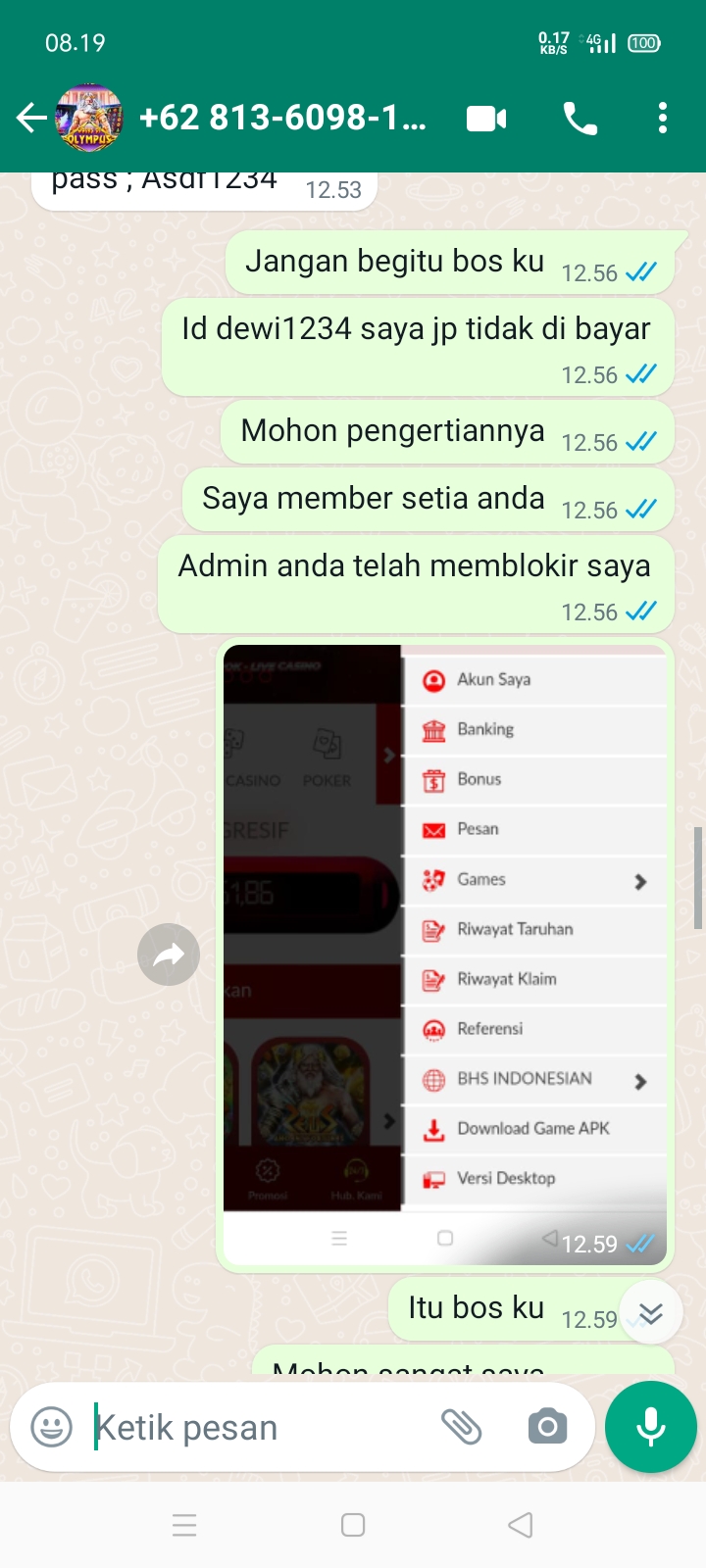 8. Bos mohon di bantu slot79 tidak membayar WD saya 60 juta
