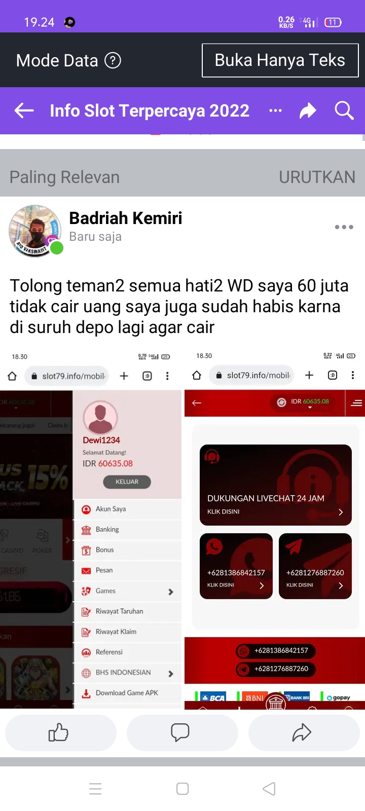 19. Hati hati togelup sudah mulai bangkrut depo ga diprosekan dan penerima dana atas nama kurnia hati hati cukup saya saja