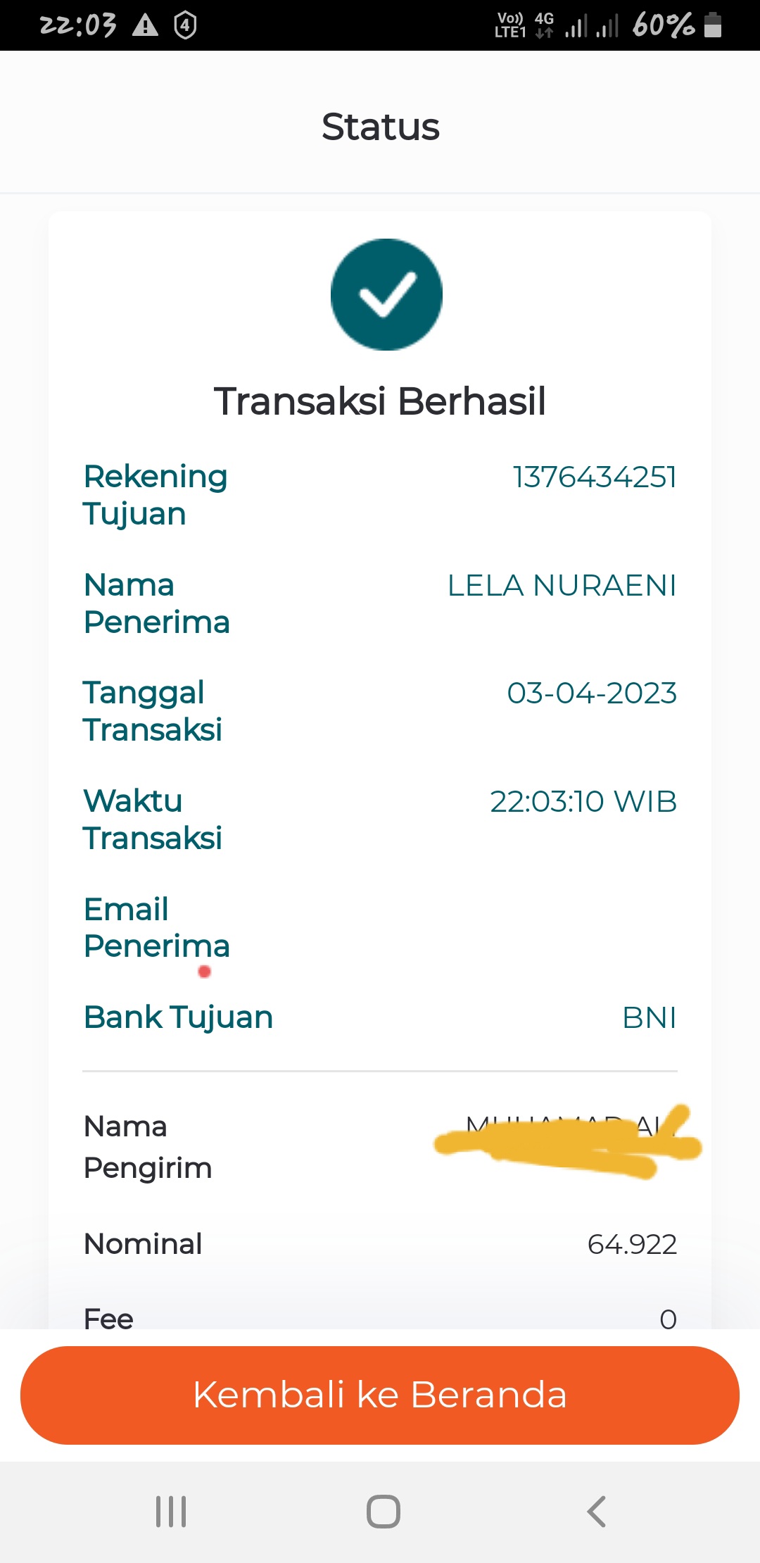 sobat ada bukti mutasi transfer dana di bo tersebut