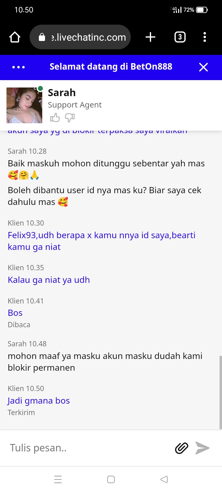Bos tolong dibantu wd akun di blokir alesan nya saya spam 5x BO BETON888