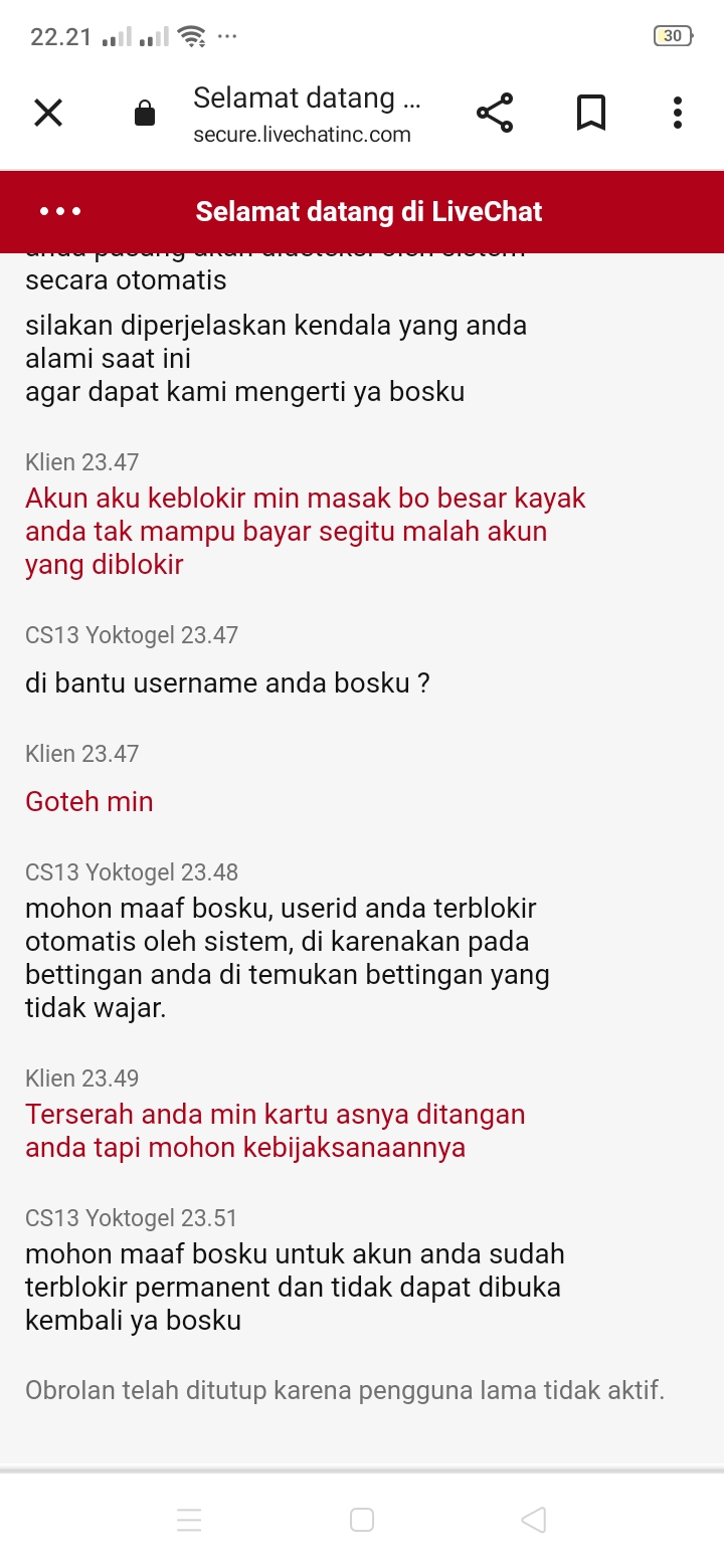 2. Sudah bos, cuma tanya id,trs tidak ada tindakan….akun di kunci, live chat GK bisa,wa juga GK bisa telegram juga GK bsa