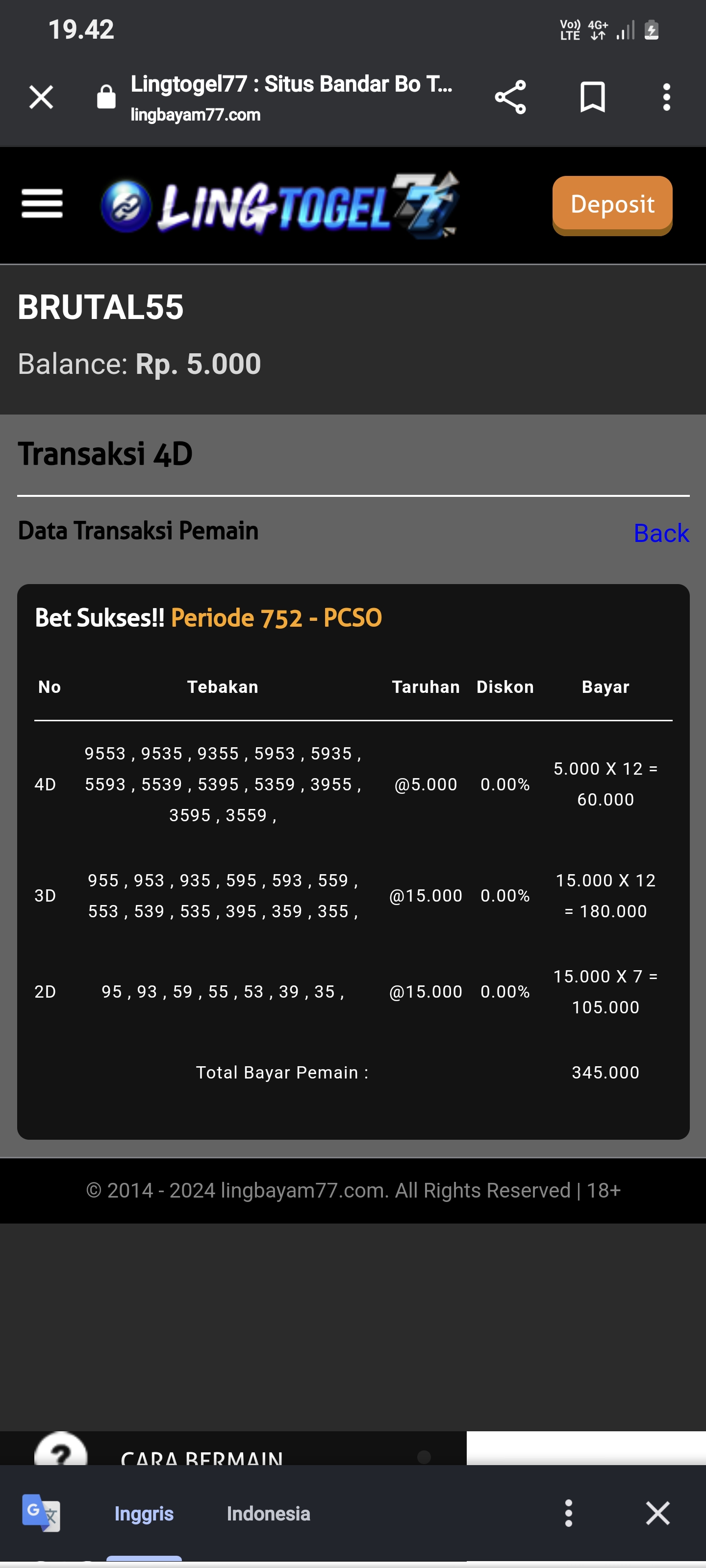 4. apa bila sudah pas untuk bermain di BO yg kita ingin kan jangan lupa setiap kali ber transaksi untuk screnshot (SS) hasil invoice betingan sebelum result.