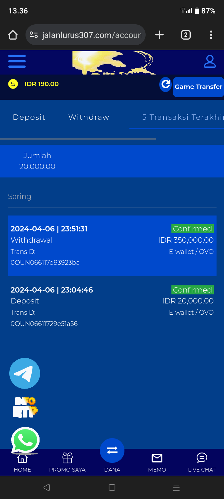 50. Bos kalo mawartoto aman?, soalnya saldo saya masih belum masuk dan live chat nya offline terus.