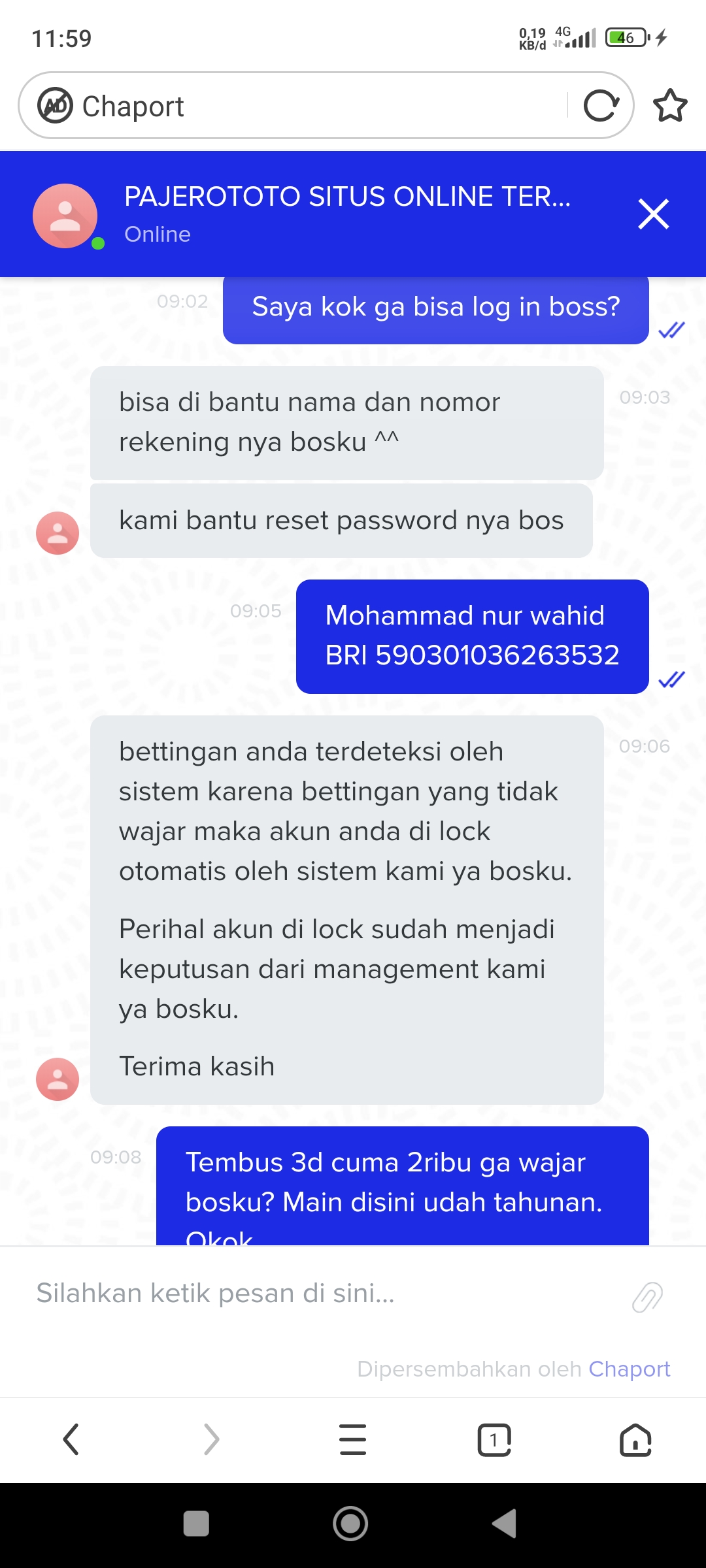9. Tolong dong min aku main di yok togel pas jp 14 k lebih akun aku di blok alasan klasik curang