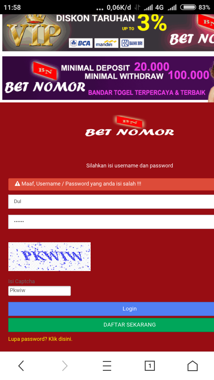 5. Laskartoto jangan diikuti sobat, karena mulai dari jam 21.30 sampai sekarang sudah ofline.sehingga kita tidak dapat login untuk mau tarik kemenangan.