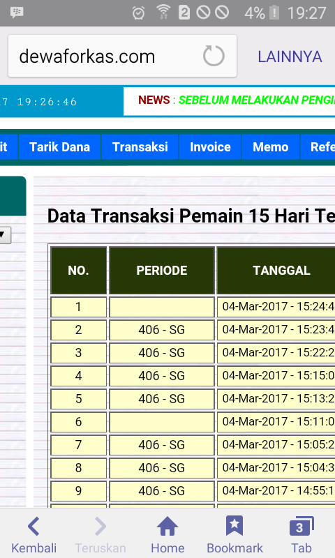 Periode Invoice Tebakan Posisi Taruhan Diskon (%) Bayar Status Total