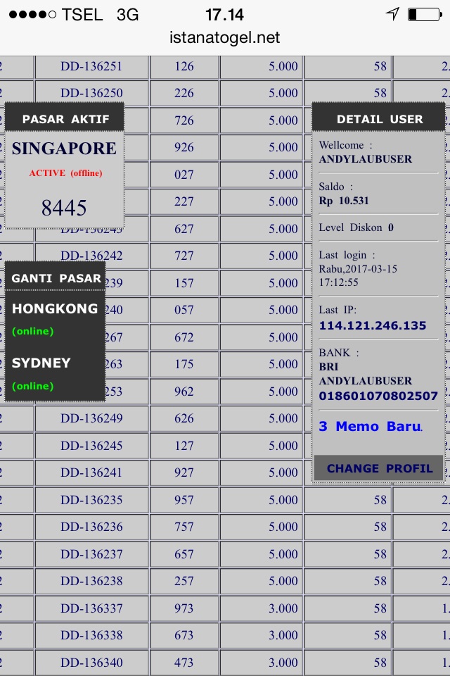 1. Resul hongkong 7208 sahh.. Saya masang 08#150000..di senangtoto.com…gak di bayar.. Beting saya semua di rubah..
