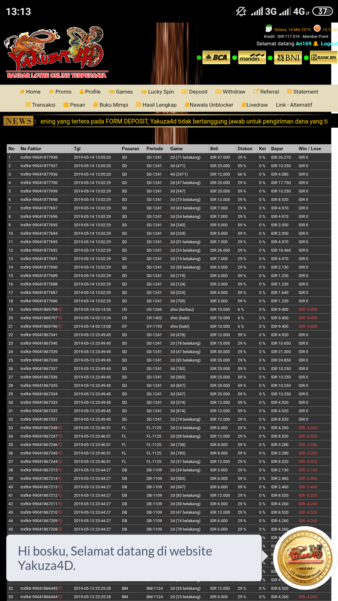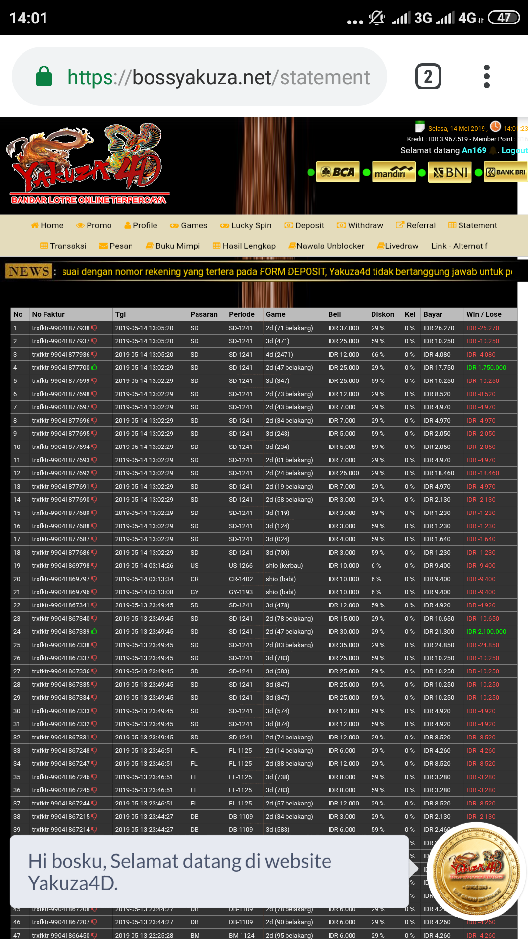 25. Met malam min,’SBOTOGEL’ wd blm msk dg alasan gangguan jaringan bank mandiri.