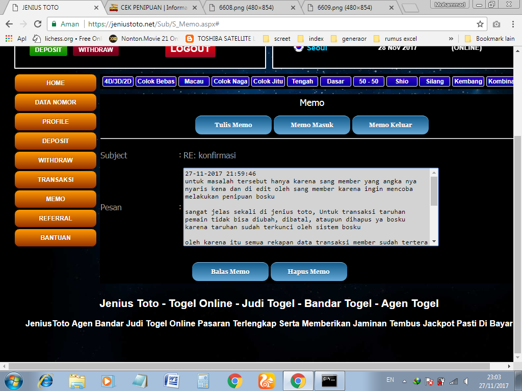 setelah saya kirim memo ke pengurus jenius toto, begini jawabannya