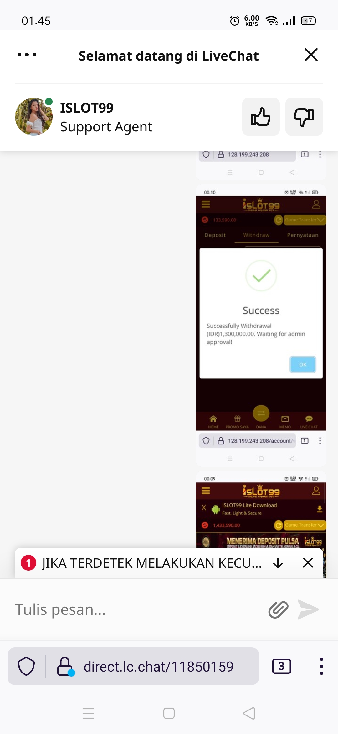 45. Hati2 dengan BO SLOT Islot99, WD tidak diproses sebesar 1,3JT, mereka beralasan ada kesamaan IP, dan akun dibekukan.
