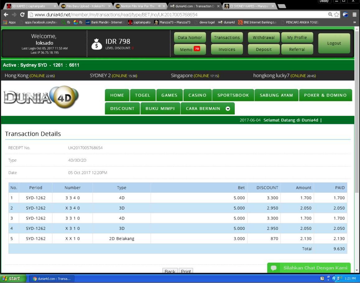13. saya baru aja kena tipu main d DUNIA4D …pasangan saya Sydney tgl 5 oktober 2017 tembus 4D 3340 …pas mau login akun saya tdk bisa masuk lagi…bagi teman2 mending cari bandar togel yg lain jgn main d DUNIA4D lg…