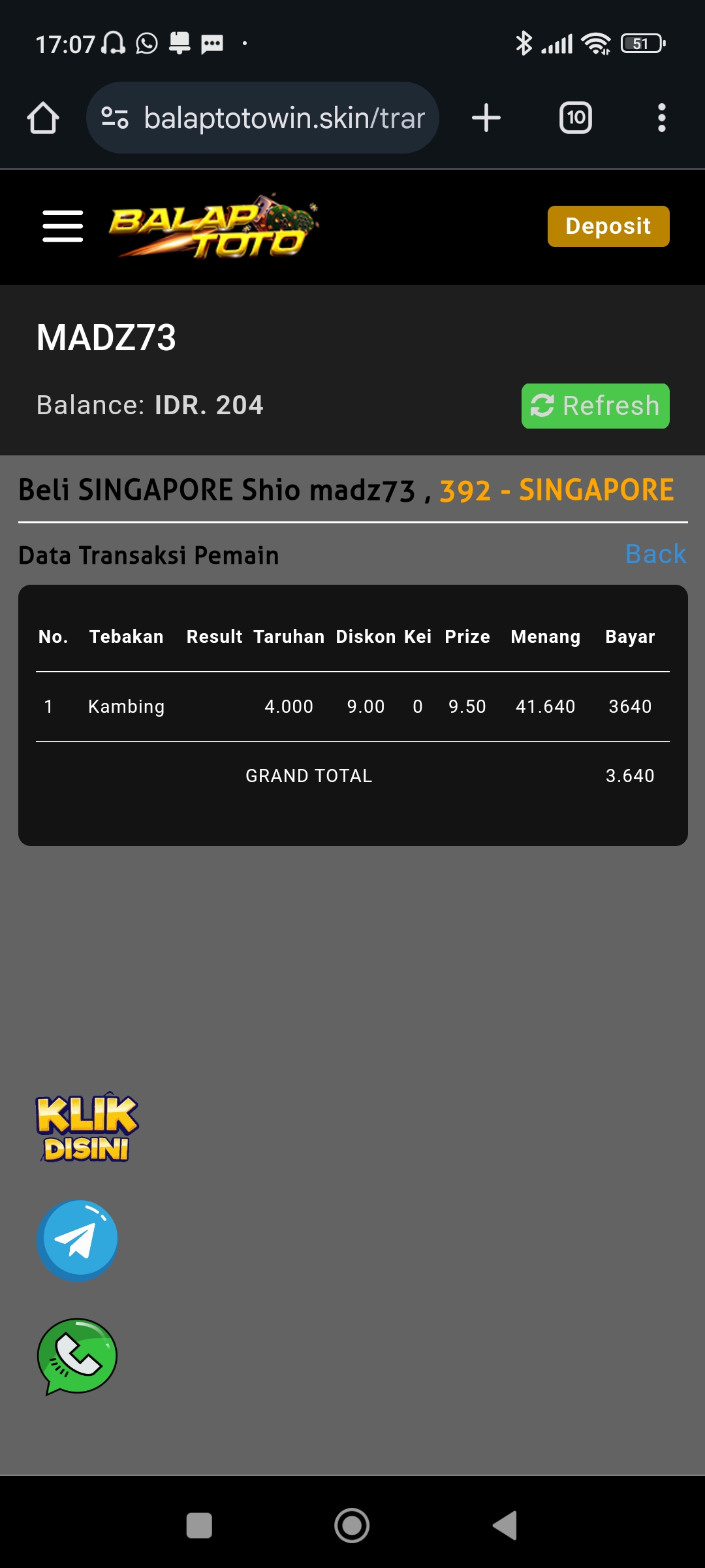 Bang Ricahrd, mohon atensi DAPUR TOTO main HK tgl 11 jan 2026. Cuma dapat 1jt 50rb, ngga dibayar.! Untk pemain togel waspadai bandar modal nipu.!!!