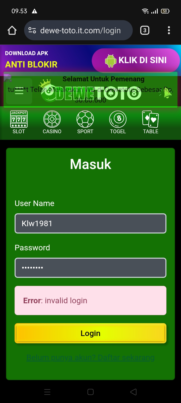 Bang Richard saya JP 61jt di diva togel tidak dibayar bang.. tidak bisa login ke akun.. tolong dibantu bang..